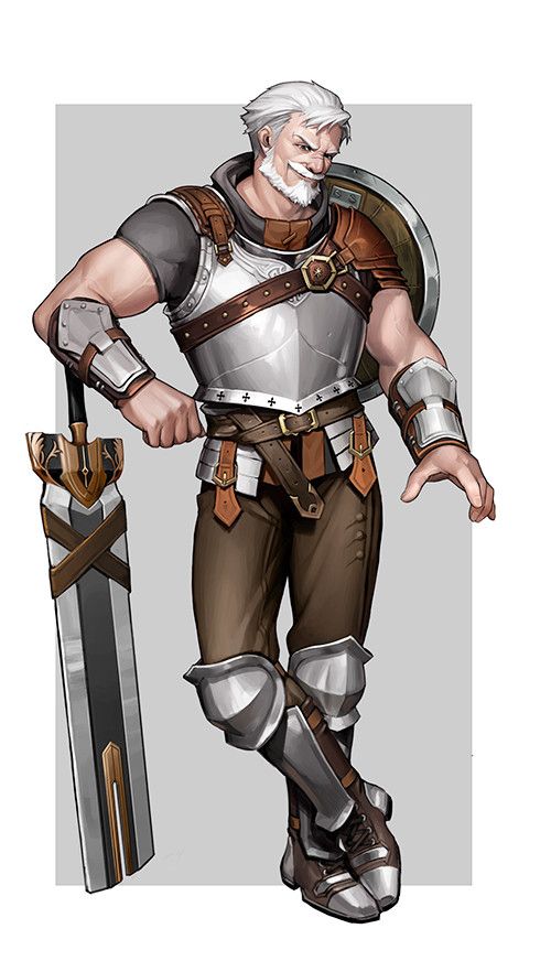 Short, and stocky with a powerful build. His hair is blond going white early, and he tries to keep himself looking like the soldier he used to be. Prefers to fight with a sword and shield.