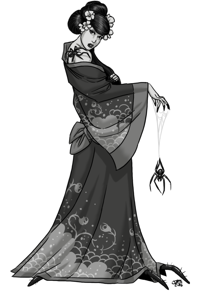 thousand phantasms as a spirit still bound to the material plane, she is neither alive nor a ghost. She was a spider who lived for four hundred years and finally reached her 400th birthday during this event, thus passing on to the next life as a magical humanoid spider. But because the barriers between the spirit realm and the material plane were torn down, she never left her physical body and thus never died. After the event ended, Lady Aigumo found herself still in the world of the living where all other spirits were sucked back to where they belonged.