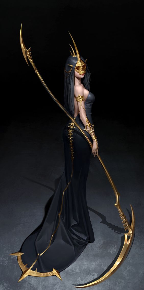 A long, curved blade attached to a wooden shaft. A variant of this weapon has the blade attached parallel to the shaft, rather than perpendicular.