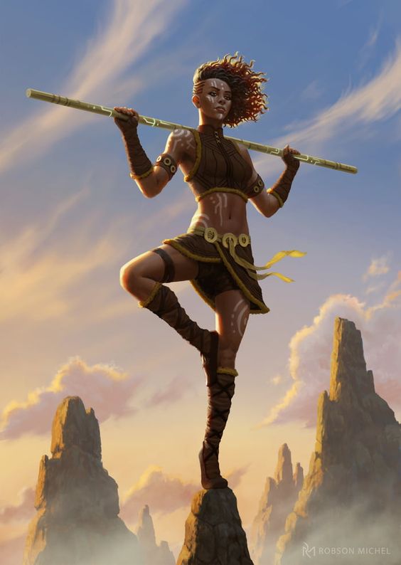 Weapon Of Choice: A thick bamboo staff, enhanced with special runes that allow her to transfer her magical energy within the staff, making her attacks stronger.