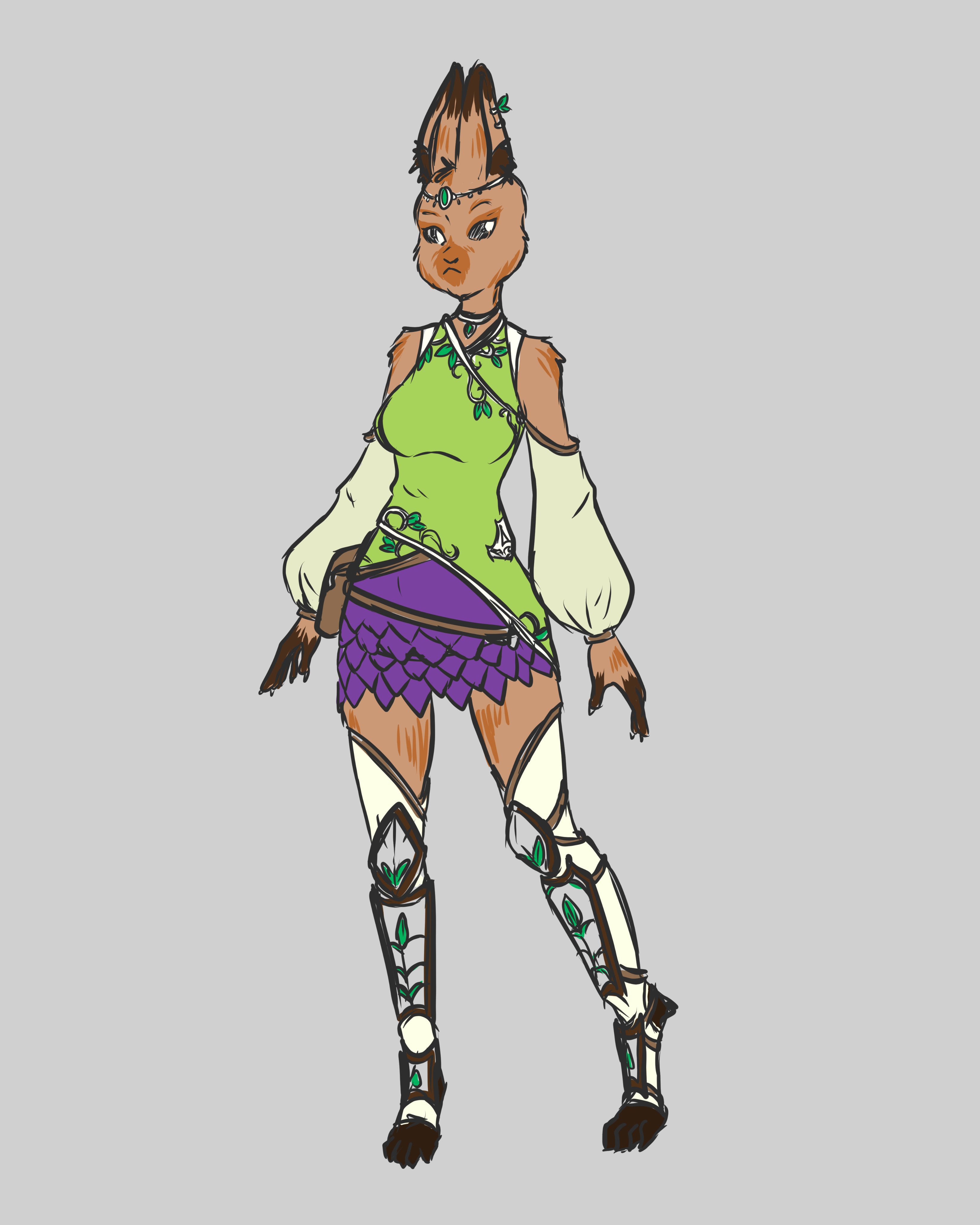 Over time, her nimbleness caught the eye of a small guild called The Tree's Speech who specialize in exploring the Fey Wild's more natural and ruthless landscapes, acting as scouts to report Wild Magic shifts or finding those who have accidentally crossed into the Wilds on accident and guiding them back to safe lands where they can return to their home realm. While the Fey Wilds were her home, she never really delved too deep because of the dangers, so she was established as a trainee scout (which to her meant more excuses to avoid formal meetings), but during her training is when her truest spark of awakening occurred.