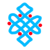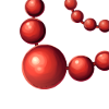 This string of beads has been decorated with symbols representing one or more gods. It is used in religious practice, often as a way of counting prayer repetitions.
