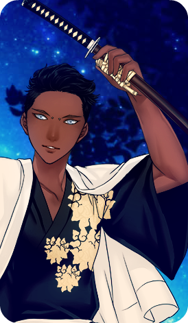 Description: A dark skinned young man of a rather lithe yet muscular build. He has rather astonishing ice blue eyes and lips that seemed curled in a constant half-smile which comes as easily as it goes. Set between his eyebrows are two small silver beads placed their long before he joined the temple of Suishō no Kyūden. He stands as a rather tall and imposing figure but gives off a warm, casual aura wherever he goes- often clad in simply monk robes or kimono as he travels or tends to the grounds of the Temple.
