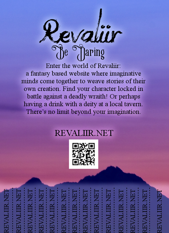 Include a Summary of Our World: Enter the world of Revaliir : a fantasy based website where imaginative minds come together to weave stories of their own creation. Find your character locked in battle against a deadly wraith! Or perhaps having a drink with a deity at a local tavern. There’s no limit beyond your imagination.